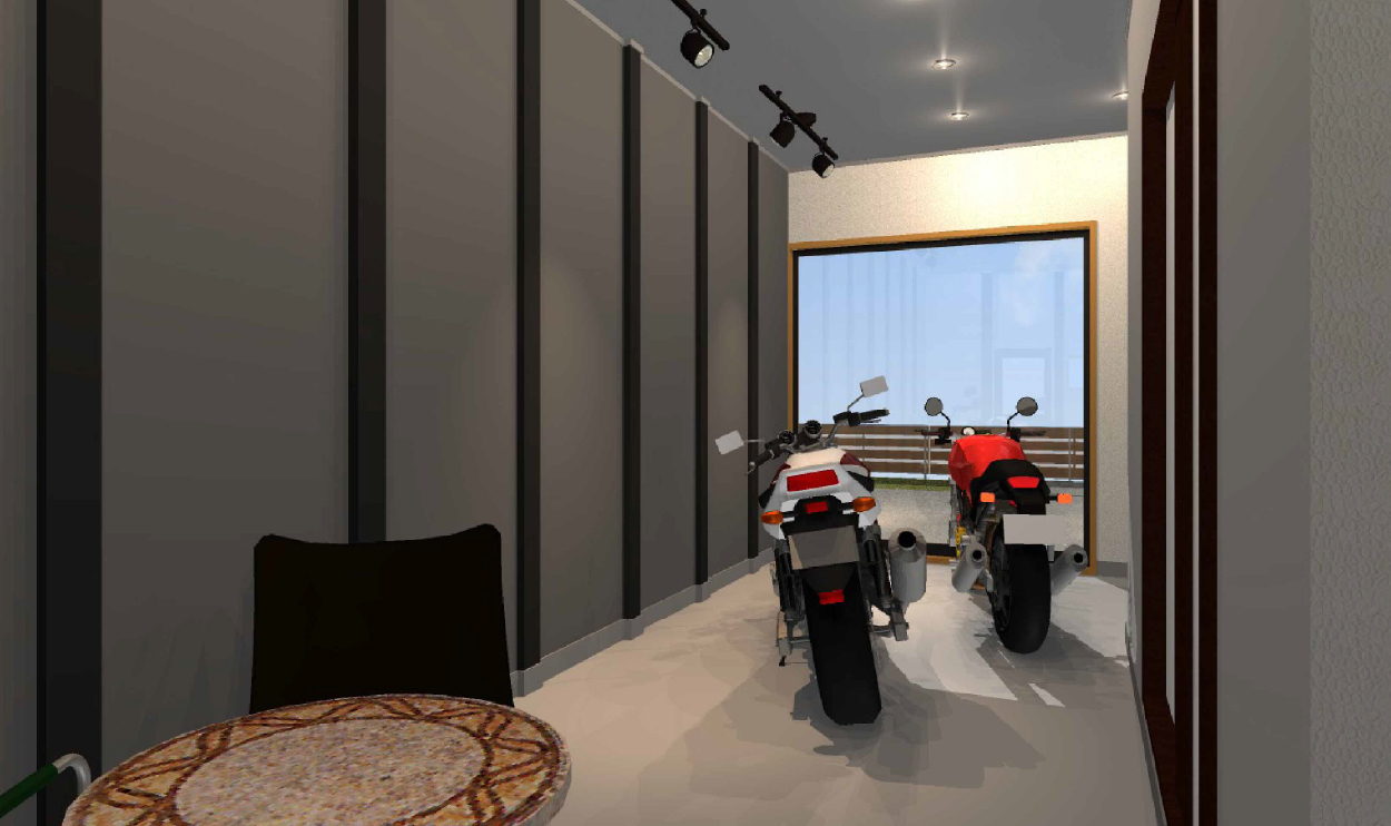 | 想定用途 | ・バイクや小型自動車などの整備や保管 ・バイクツーリングの拠点(バイクや装備の保管) ・アウトドア用品やレジャー用品などの保管 (サーフボード、ジェットスキー、釣り用具など) ・作品の展示アトリエ ・自転車の整備やパーツ類の保管、室内トレーニング ・楽器演奏や音楽制作[防音室] ・ゲーム実況などのインターネット配信[防音室] ・本格的なトレーニング器具を設置した専用ミニジム ・写真や動画などの簡易撮影スタジオ など |